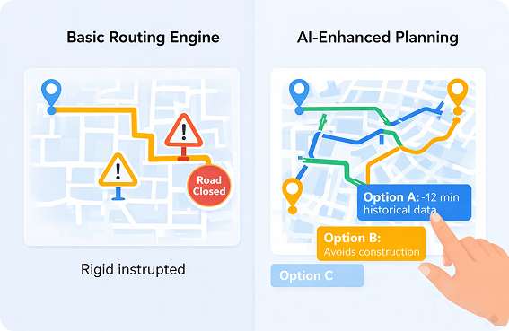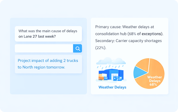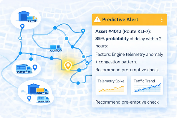 AI initiatives in logistics often remain disconnected from execution, existing as standalone dashboards or analytical experiments without operational impact. Fragmented data across TMS, WMS, telematics, and financial systems limits automation, keeps routing and pricing semi-manual, and delays risk detection. Integrated AI models operating inside your core workflows enable automated planning improvements, reliable forecasts, dynamic pricing logic, and early anomaly detection without introducing another isolated tool.