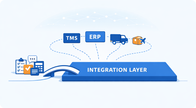 TwinCore builds custom logistics API integrations that connect your TMS, WMS, ERP, OMS, CRM, carriers, and delivery platforms into one real-time operational network.