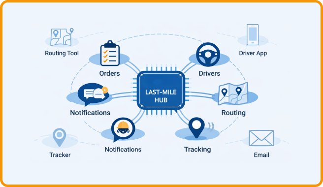 TwinCore builds custom last mile delivery management software that orchestrates orders, drivers, routing, tracking, and customer notifications in a single operational system.